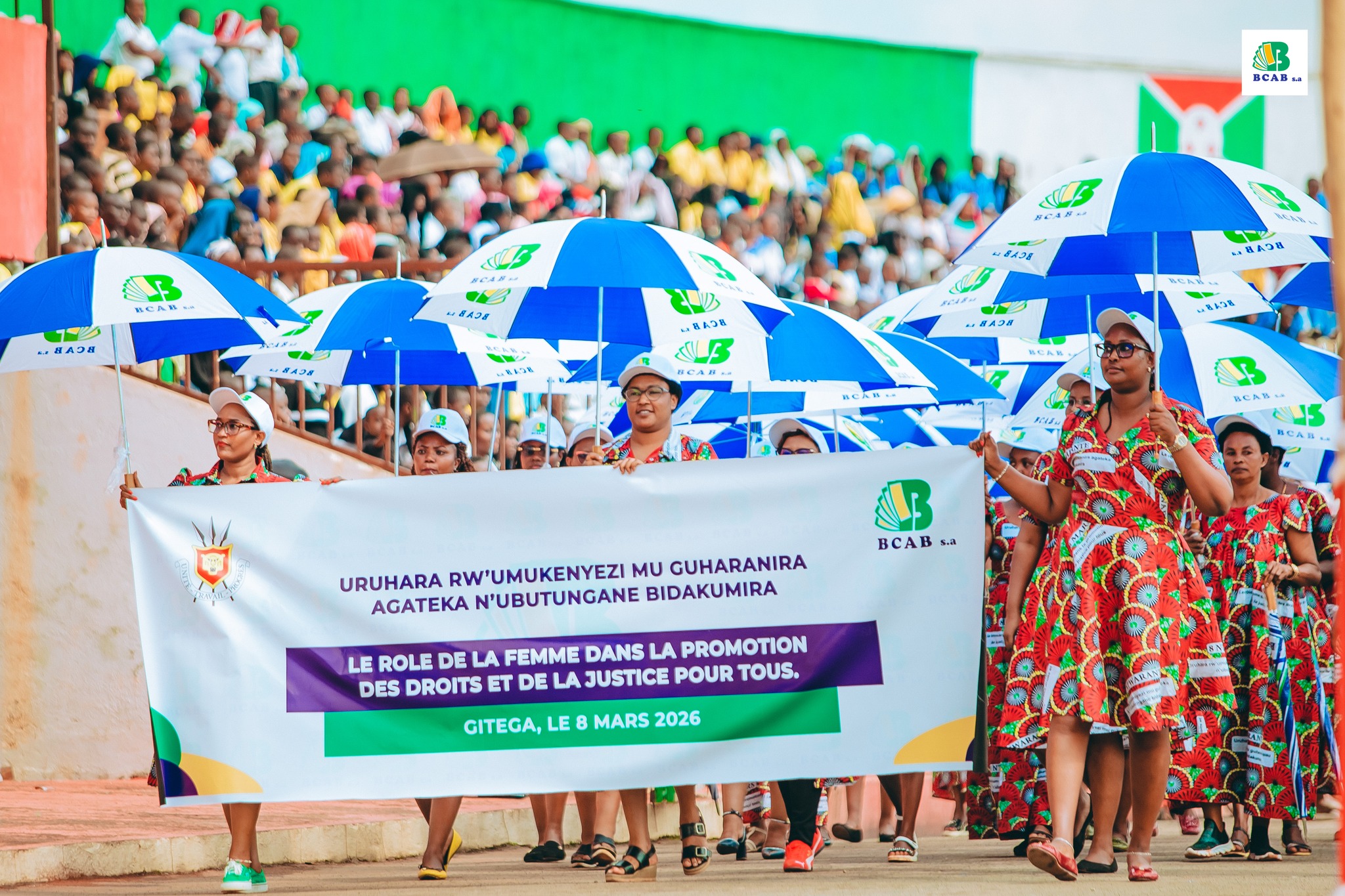 La BCAB a pris part, ce 09 mars 2026, aux cérémonies de célébration de la Journée internationale des droits des femmes au Stade Ingoma à Gitega, organisées par le Ministère de la Justice, des Droits de la Personne Humaine et du Genre sous le Haut Patronage de Son Excellence Monsieur le Président de la République.