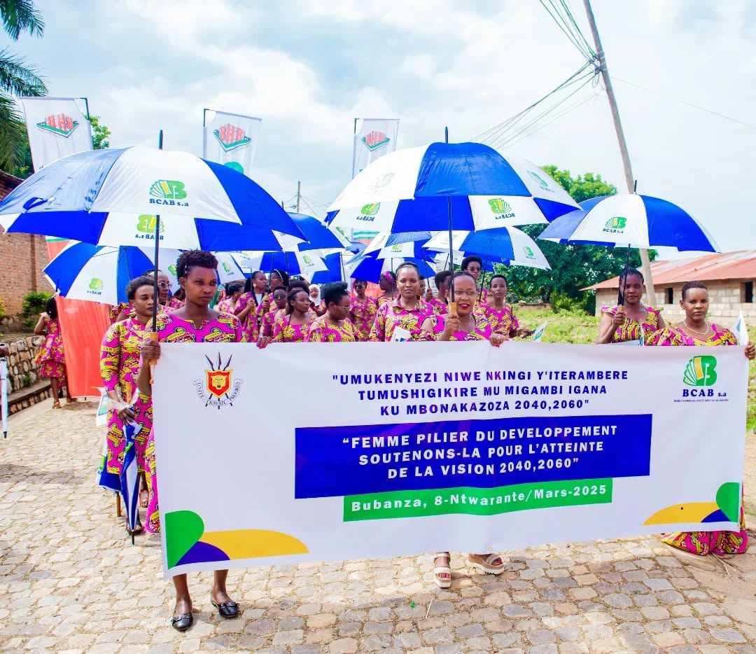 Lors de la célébration de la Journée Internationale des Droits des Femmes, les femmes employées de la BCAB se sont jointes aux autres participantes pour un défilé à Bubanza sous le thème: "FEMME PILIER DU DEVELOPPEMENT SOUTENONS-LA POUR L'ATTEINTE DE LA VISION 2040, 2060"